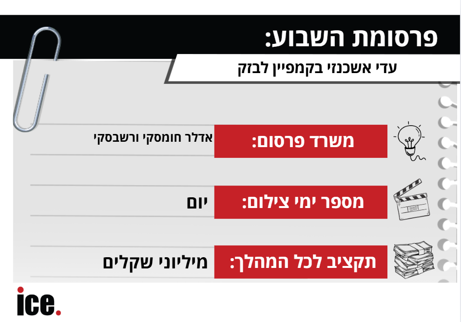 בקמפיין החדש של בזק, בו מככבת עדי אשכנזי, הקומיקאית מספרת בגאווה על השירות החדש של חברת התקשורת. במסגרת הרפורמה במשק החשמל בישראל, החברה משיקה את בזק Energy - המצטרפים החדשים יוכלו ליהנות מחיסכון של עד מאות שקלים בשנה בחשבון החשמל.