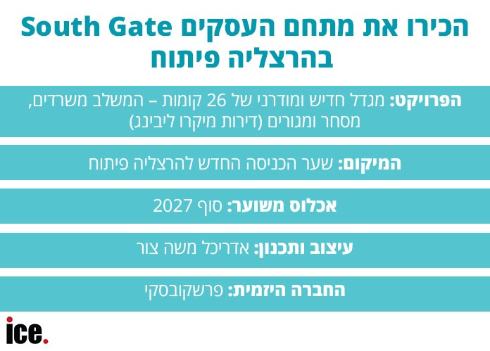 הרצליה פיתוח מתחדשת עם רובע עירוני מודרני ונגיש – כשאת המהפכה ממחיש פרויקט South Gate של פרשקובסקי: מגדל של 26 קומות שמשלב משרדים, מגורים, מסחר ובילוי, ומציע כעת במסגרת נובמבר סייל הזדמנויות רכישה ייחודיות