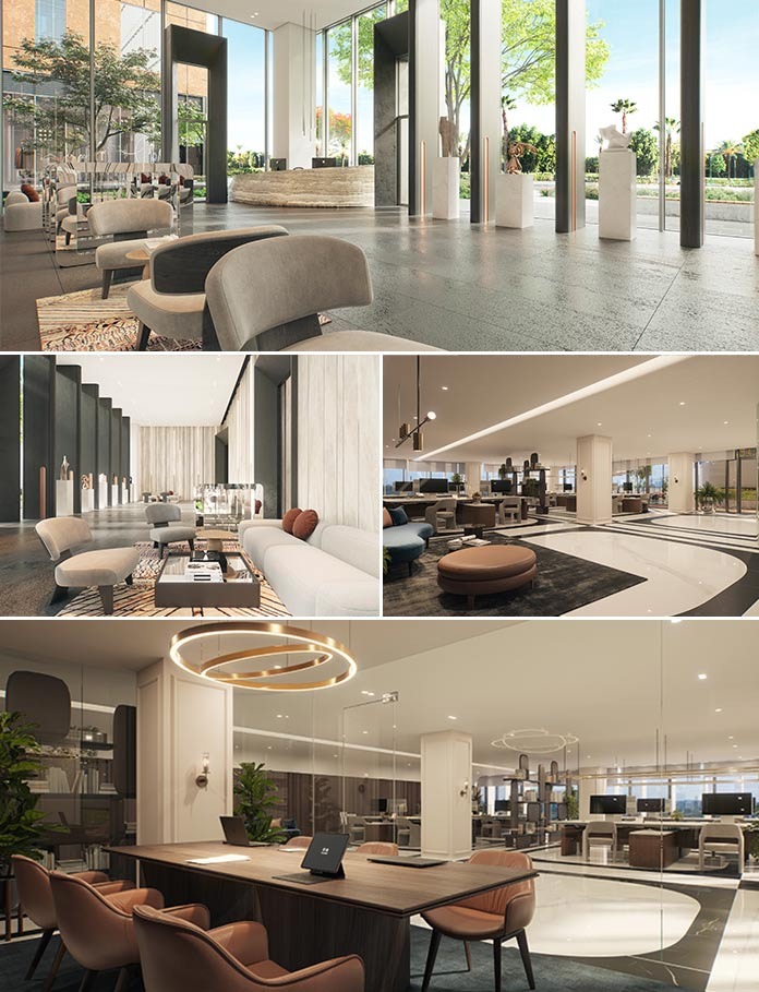 לצד לובי מפואר בקומת הכניסה, מתהדר הפרויקט בלובי נוסף בקומה ה-20, בריכה וחדר כושר, Roof Top עם נוף לים, מרפסות ענק, גינות אקולוגיות ושלל פינות ירוקות. מי שמופקדים על הפרויקט בכובע האדריכלי הם שניים מהשמות הבכירים בתחום: משה צור אחראי על התכנון ומיכאל אזולאי על עיצוב המרחבים הציבוריים.