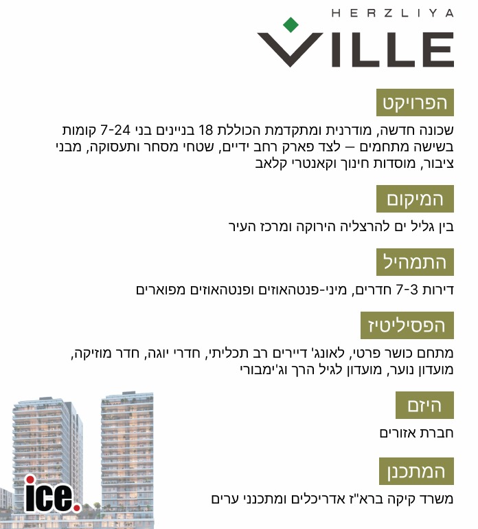 השורה התחתונה ברורה: על רקע השינויים בשוק המקומי, הקמת שכונה חדשה בהיקף כזה מקבלת משמעות רחבה הרבה יותר. הרצליה VILLE אינו רק פרויקט מגורים נוסף על מפת הרצליה, כי אם מודל שמביא פרשנות רעננה לחיים בלב העיר ומרכז הארץ.
