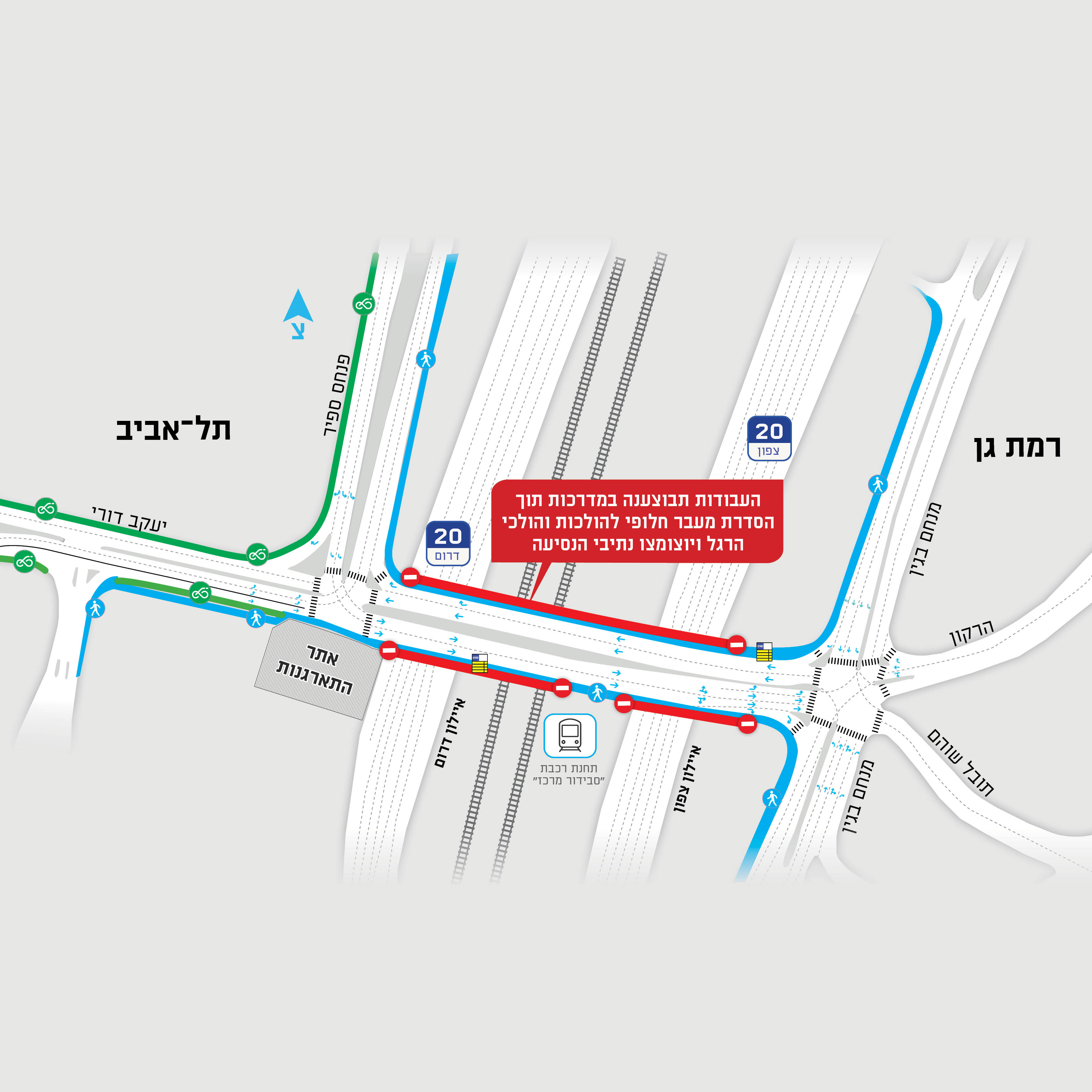 העבודות יכללו הנפת גשרים ופריסת הסדרי תנועה חדשים, ויבוצעו בשעות הלילה במטרה לצמצם את הפגיעה בתנועה השוטפת. החסימות המרכזיות יתבצעו בכביש 20 (איילון) לכיוון צפון, ייחסם לתנועה בין מחלף המעפילים למחלף חוף השרון מהשעה 00:00 ועד 05:00 לפנות בוקר. הנהגים יופנו לנסיעה בכביש 2 כחלופה.