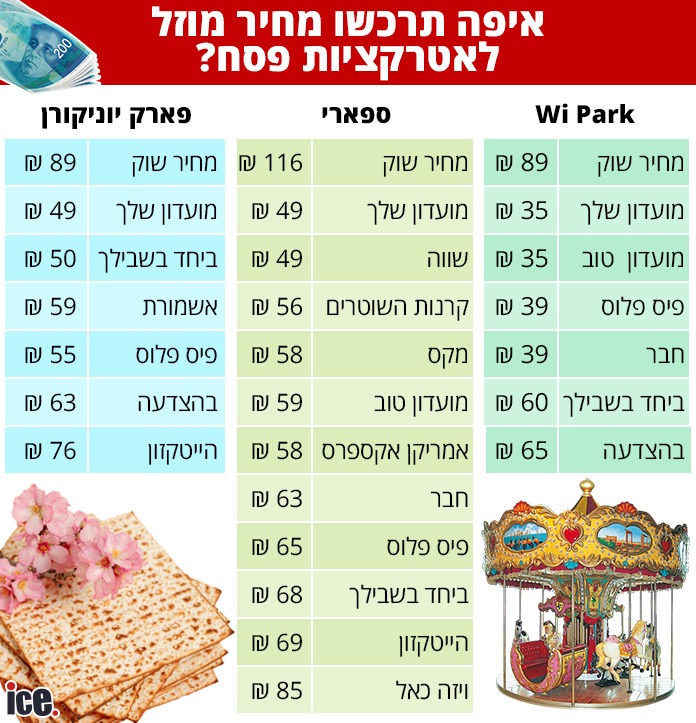 לקחנו את האטרקציות הפופולאריות של פסח 2025 ובדקנו מי מציע את ההצעה הטובה ביותר. הכנו גם טבלה. פעם, בימי הפרינט, היינו אומרים לכם לגזור ולשמור. ב-2025, נבקש שתצלמו מסך ותשתפו עם חברים. לא חבל, זה חוסך המון כסף.
