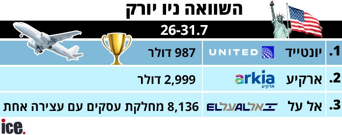 המשמעות: טיסות "מהרגע להרגע" לניו יורק הפכו למצרך נדיר, גם ביולי וגם באוגוסט.