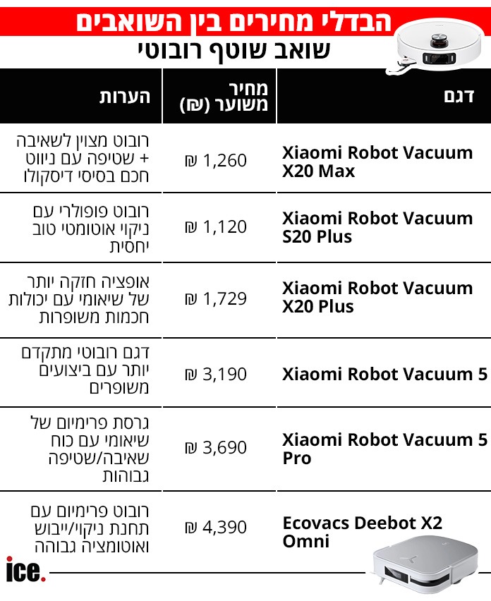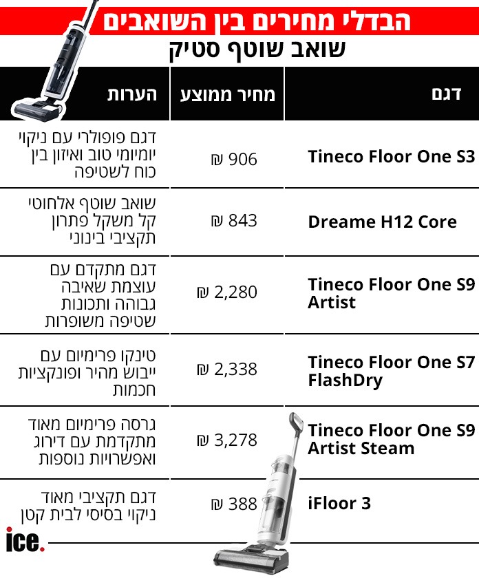 הבחירה בין שואב שוטף סטיק לרובוטי אינה נמדדת רק על נוחות, גם המחיר משחק תפקיד. פערי המחיר יכולים להגיע לכמה אלפי שקלים. בדקנו והשוונו מהם ההבדלים