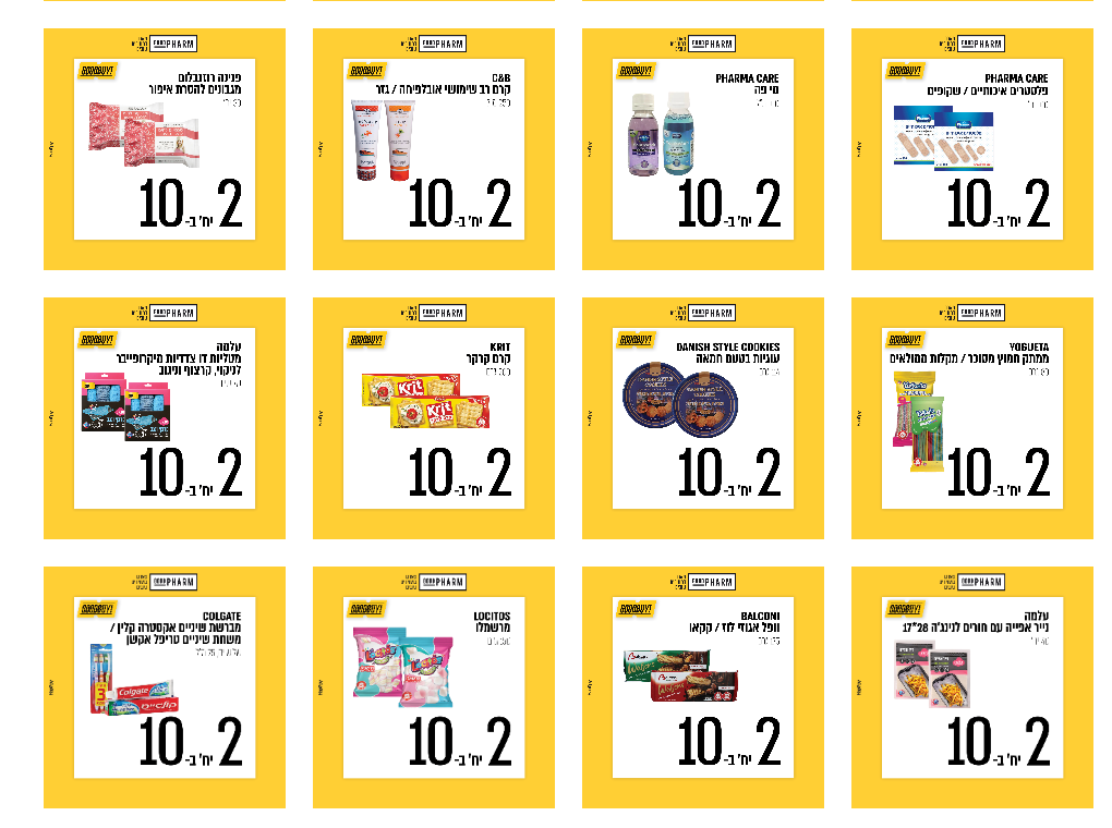 גוד פארם, רשת השיווק הישראלית שנמצאת בשליטת רמי לוי (50.01%), מנגישה עשרות מוצרים ב-10 שקלים בלבד. על פי האתר הרשמי, המבצע חל על מוצרים בתחום הטיפוח וההיגיינה, הניקיון והמזון.