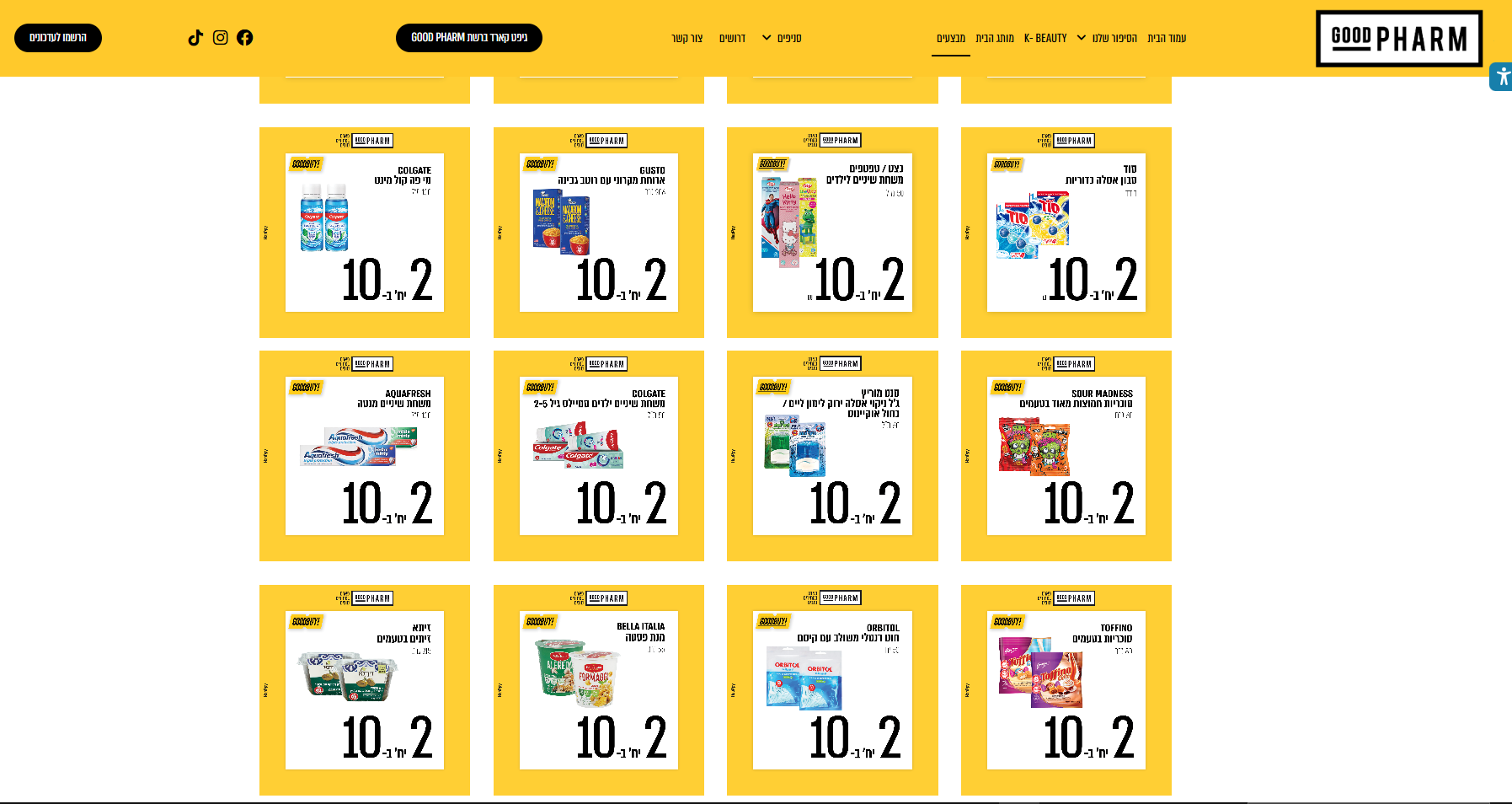 במחלקת המזון של רשת "גוד פארם", החברה מנגישה עשרות מוצרים שיימכרו ב-10 שקלים ברכישה של שתי יחידות. למשל, מנת פסטה של Bella Italia, קופסת זיתים בטעמים מבית זיתא, עוגיות וופל אגוזי לוז / קקאו של המותג Balconi, סוכריות בטעמים של חברת Toffino, עוגיות בטעם חמאה מבית Danish Style Cookies ועוד.