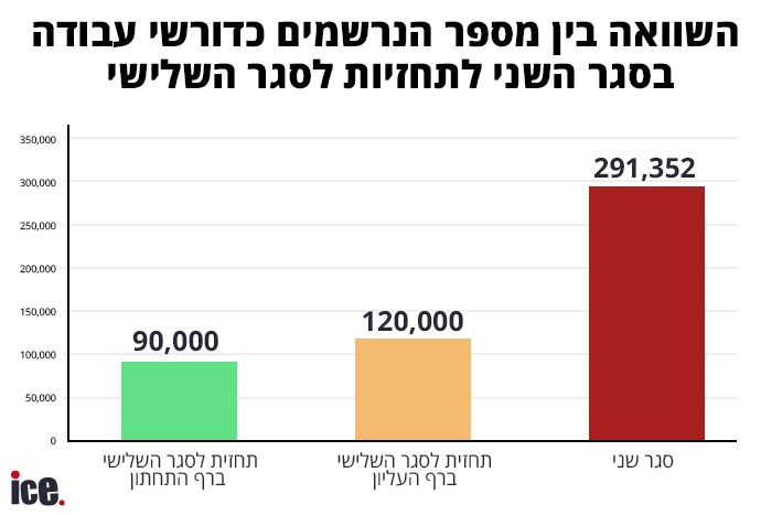 שירות התעסוקה מפרסם היום (ראשון), את תחזיתו באשר למשמעויות התעסוקתיות שצפוי שוק העבודה להתמודד איתן נוכח הסגר השלישי. לפי הערכת חוקרי שירות התעסוקה, מספר דורשי העבודה החדשים שיירשמו במהלך הסגר השלישי צפוי להיות נמוך משמעותית מאשר מספר הנרשמים במהלך הסגר השני. בעוד במהלך חודש סגר חגי תשרי כ-291 אלף איש נרשמו כדורשי עבודה, בשירות התעסוקה מעריכים כי טווח הנרשמים החזוי בסגר השלישי ינוע בין 90-120 אלף דורשי עבודה.