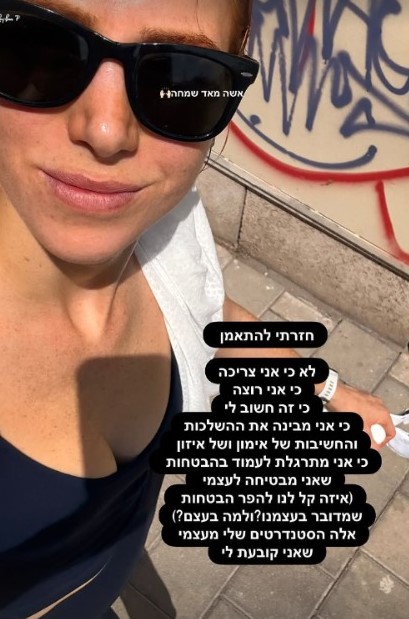 השחקנית והמשפיענית חוזרת להרגל בריא שנטשה. לדבריה, היא מתרגלת לעמוד בהבטחות. "אלה הסטנדרטים שלי שאני קובעת לי"