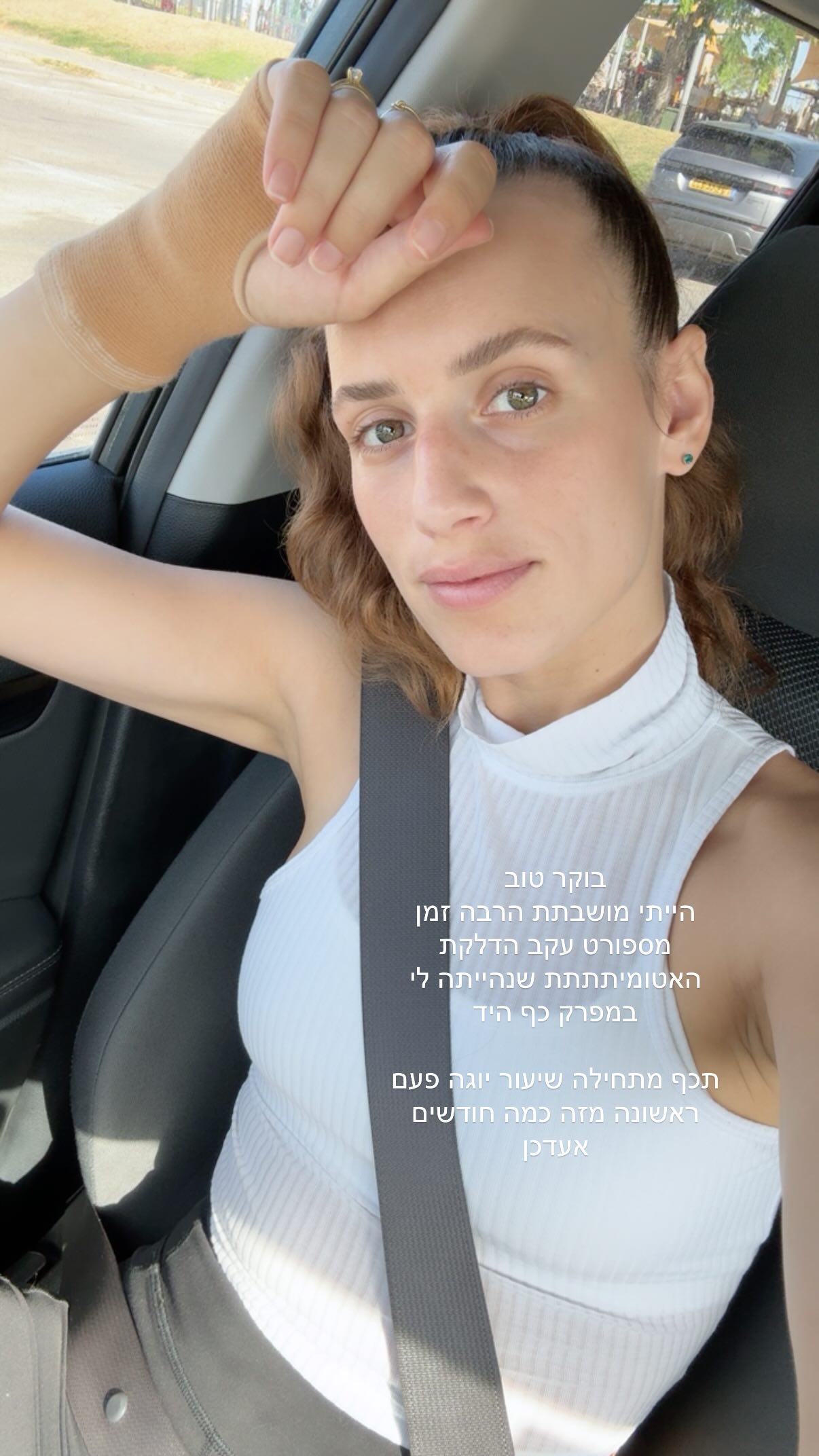 יעל אלקנה שכיכבה בסדרות כמו "הראש" ו"תחריר", חוזרת לספורט לאחר דלקת קשה במפרק כף היד. "תכף מתחילה שיעור יוגה. אעדכן"