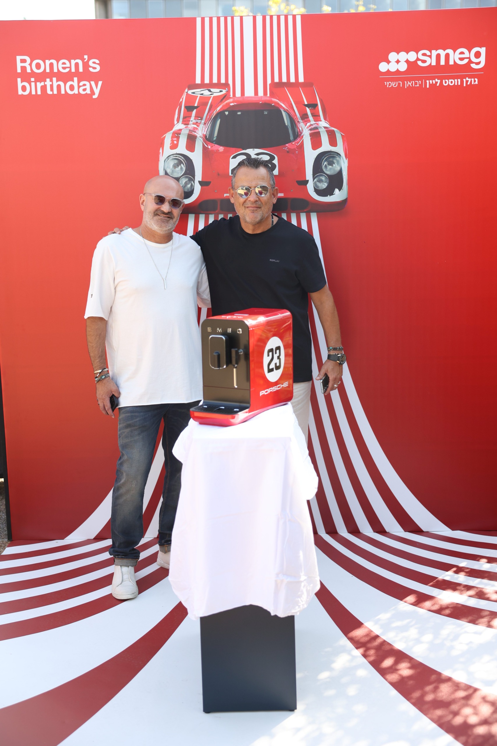 דרור בקשי, בעלי חברת גולן ווסט ליין יבואנית "smeg", מעניק לקוחלי את מתנת יום ההולדת היוקרתית. צילום: אור גפן, יח"צ