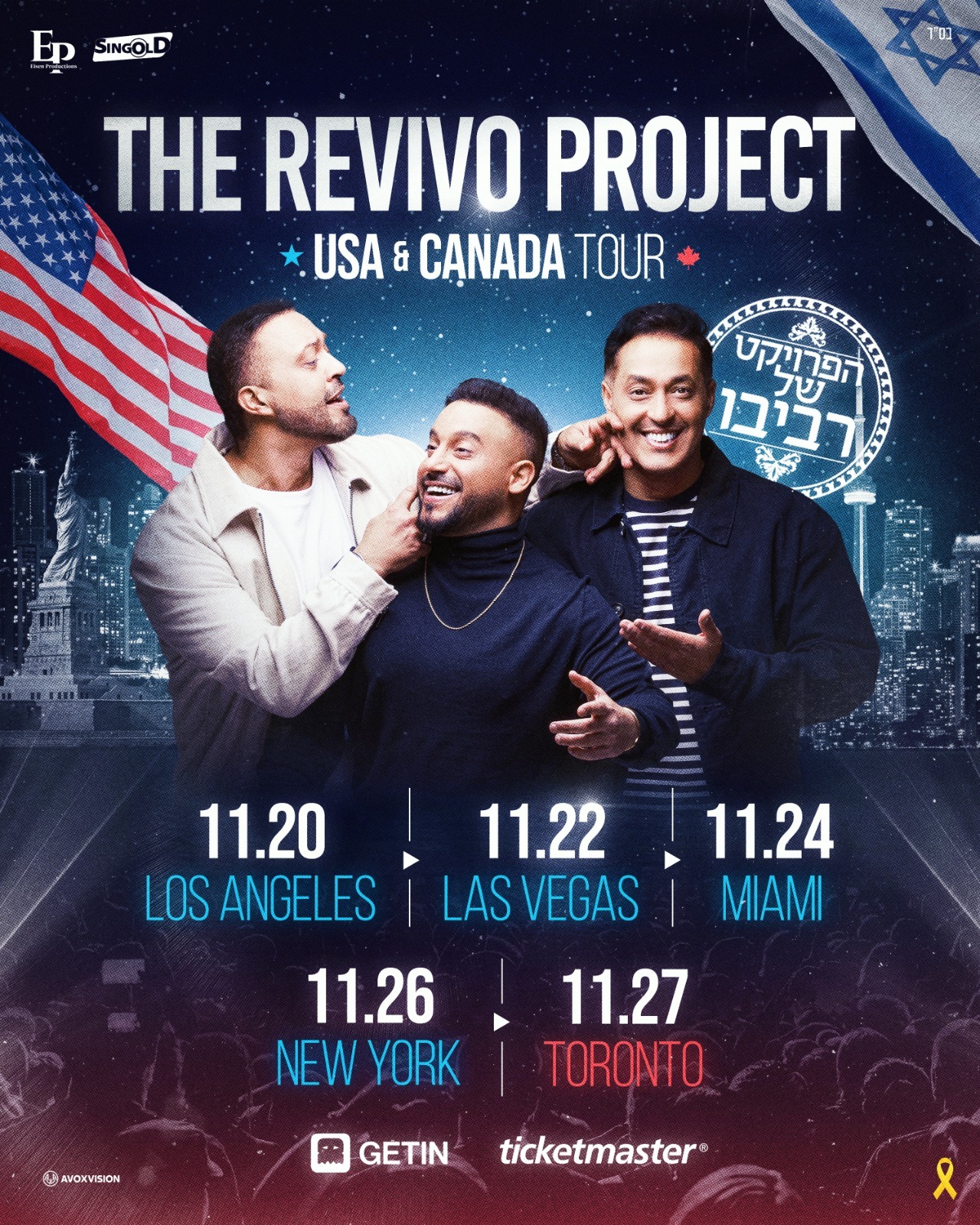 "הפרויקט של רביבו", אחד ההרכבים המוזיקליים המדוברים בישראל, לא עוצר בדרך לפסגה. ההרכב מציין כ-13 שנים מוצלחות לקריירה, ול-ice נודע הסכום שהם ירוויחו מהטור הבינלאומי שלהם בארצות הברית. כאשר חברי הפרויקט טסו הלילה (בין שלישי לרביעי) ללוס אנג'לס שם יפתחו את סיבוב ההופעות בארצות הברית, מדובר למעשה ב-8 ימים, 4 מדינות, למעלה מ-2000 איש בכל מופע; צפו בפוסטר הטור.
