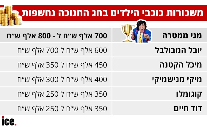 מופעי חג החנוכה, גורמים ללא מעט כוכבי ילדים ונוער לגרוף בתקופה הזו, משכורות עתק מפנקות מאוד לכיסם, והיום (רביעי) נחשפים הנתונים מבדיקת ice.