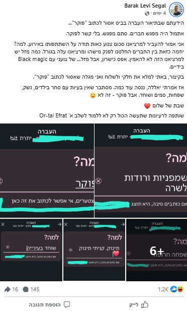מתוך דף הפייסבוק של Barak Levi Segal@