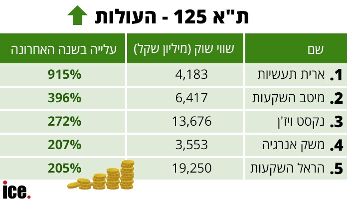 זינוקים של מאות אחוזים: המניות החזקות במדד ת"א 125