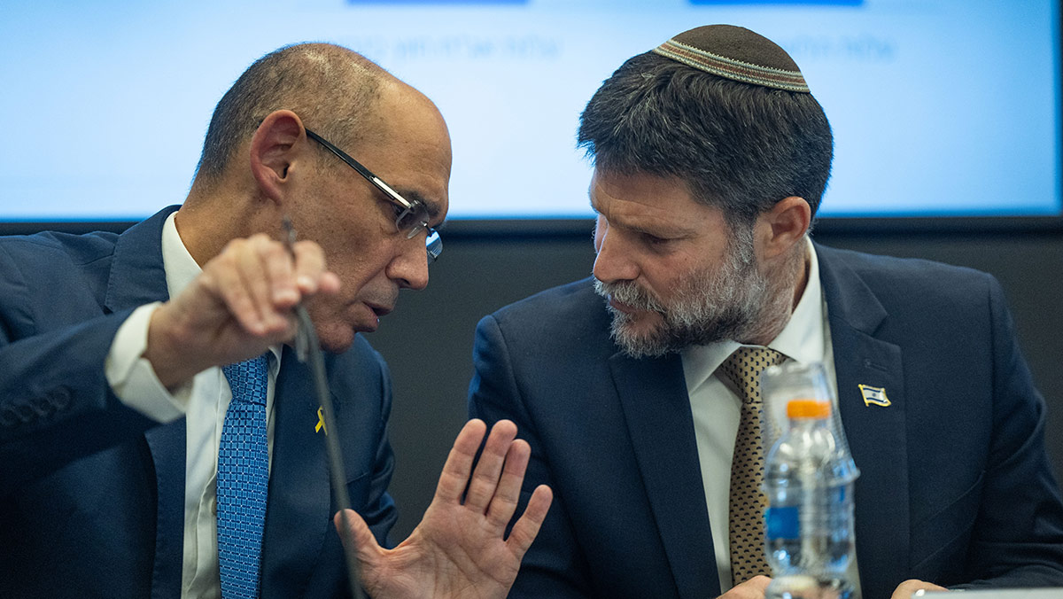 "אגן בגופי על עצמאות בנק ישראל - אבל הוא חייב להבין שהוא צריך להיות מסונכרן עם הממשלה". בצלאל סמוטריץ' ואמיר ירון. צילום: פלאש 90/ יונתן זינדל.