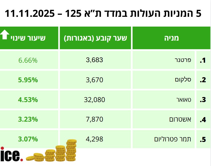 סיכום המסחר בבורסה: עליות במדדים, זו המניה שזינקה ביותר מ-6%