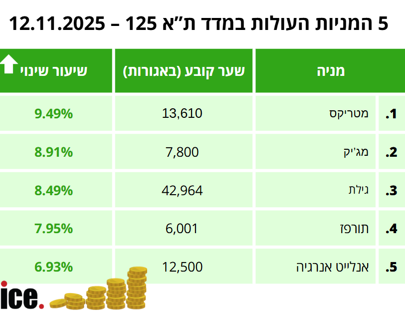 סיכום המסחר בבורסה: עליות במדדים, זו המניה שצמחה ביותר מ-9%