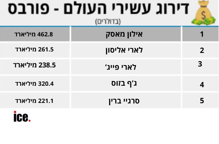 דירוג עשירי העולם של מגזין "פורבס": הצמרת הגבוהה חוטפת מכות קשות. מאסק שומר על הפסגה למרות שהפסיד כמעט 5 מיליארד דולר, אליסון שני למרות הפסדי עתק. מייסדי גוגל צנחו, וכמה הפסיד ג'ף בזוס?