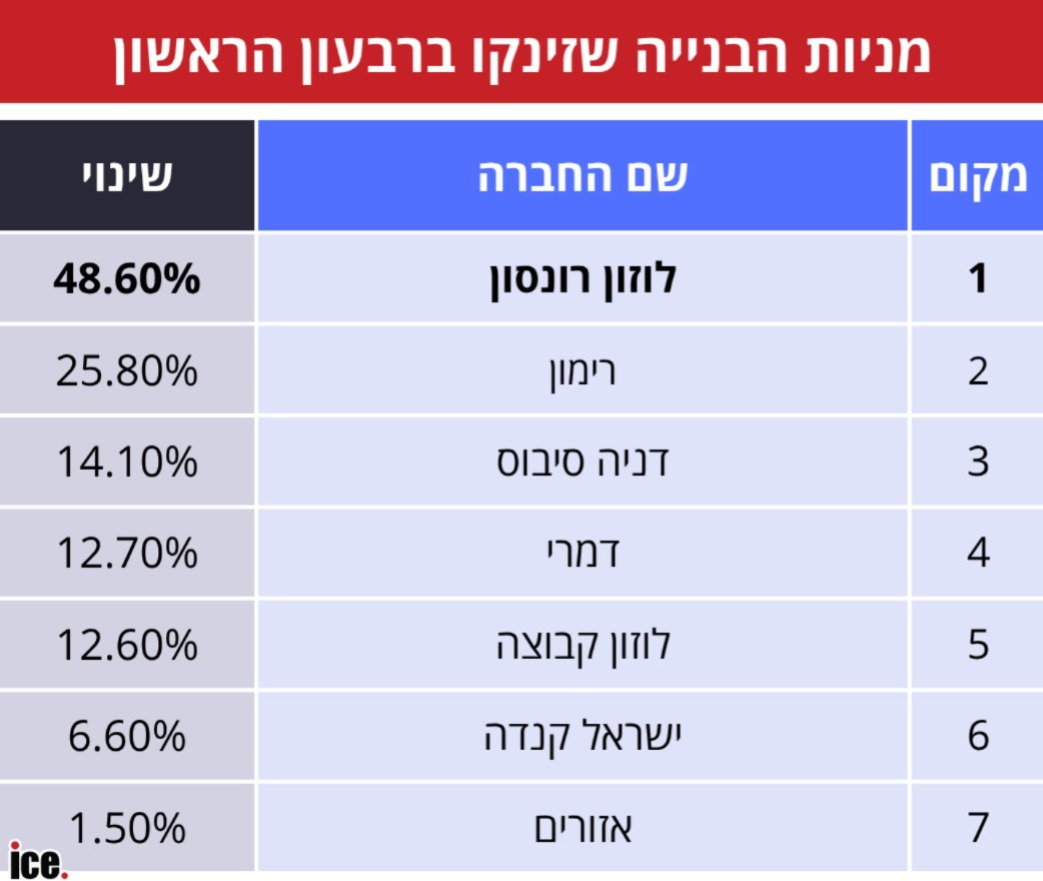 למרות ההאטה בשוק והמלחמה, חלק ממניות הקבלנים רשמו זינוק בחודשיים הראשונים של השנה, שחיפו על הירידה במרץ. אלה המניות שזינקו. ומה הסיבות להצלחה של עמוס לוזון?