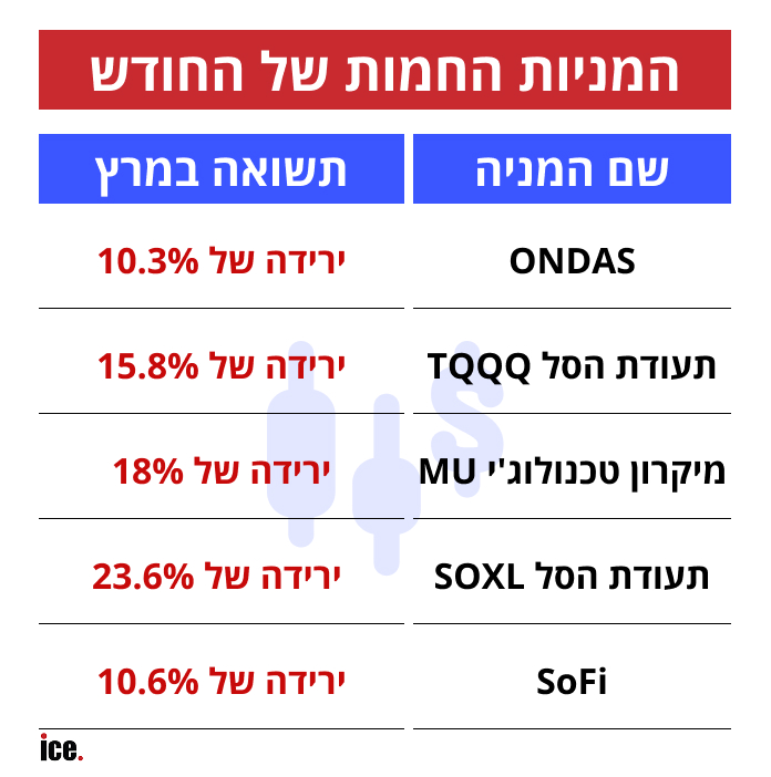 יש לציין שלא מדובר במניות שרשמו את העלייה הגבוהה ביותר, וגם לא אלו שבהכרח עלו, אלא המניות שריכזו את הכי הרבה תנועה בחודש מרץ, והיו עם מחזורי המסחר הגבוהים ביותר בבורסות הזרות בקרב הסוחרים העצמאיים. אלה המניות שהכי להטו החודש: