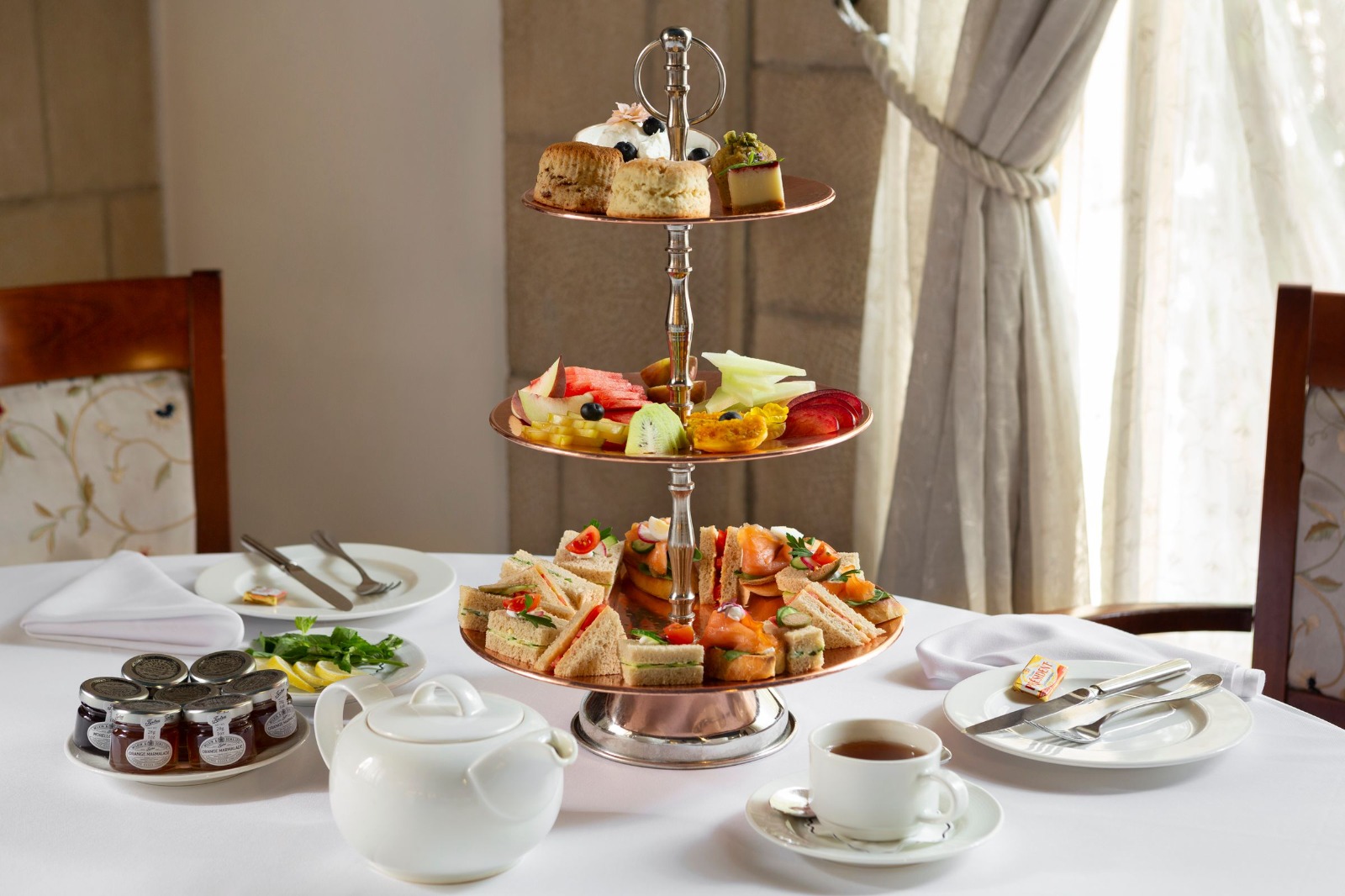 בנוסף, בימים אלה ועד אמצע ינואר, מוגשות במסגרת שעת התה עוגיות סקונס מסורתיות או עם ניחוח קינמון, עוגיות ג'ינג'ר כיאה לחגי דצמבר, ריבה וחמאה עשירה. פלחי פירות העונה מלווים בקצפת מפתה וכמובן קנקן תה. המחיר הוא 140 שח לאדם. מחיר 140 ₪ לאדם.