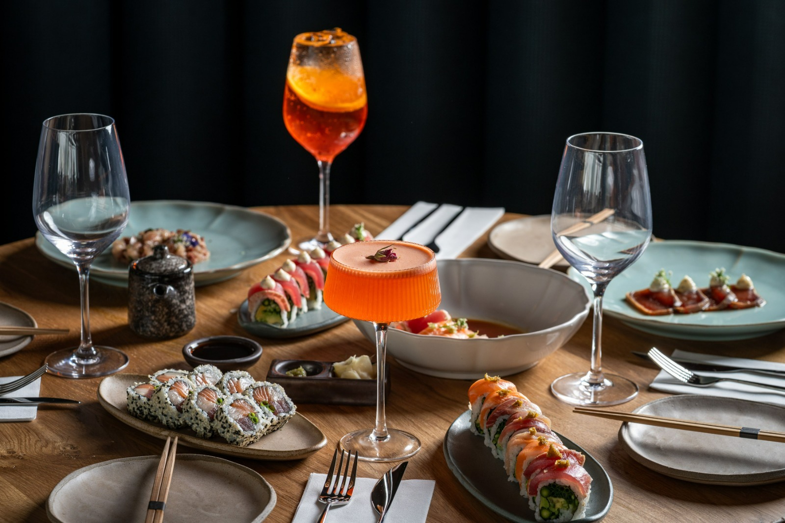 התפריט מתמקד בחומרי גלם מדויקים ובטכניקות מטבח יפניות, ויציע מגוון מנות מוקפדות -בין המנות שיוגשו: נאסו דנגאקו - חציל צלוי במיסו בהיר ודבש על קרם שומשום שחור (53 שקל), קריספי נגיטורו - טרטר טונה בלופין בסגנון אוסקה על קרקר אורז קריספי (79 שקל), סשימי המאצ’י או טונה בלופין בויניגרט סאקה-יוזו (82 שקל), וטאי נו טמפורה - נתחי דניס בטמפורה על כרוב צלוי מפורק וקרם עירית (109 שקל).
