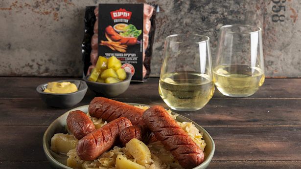 עזבו אתכם מנקניקיות רגילות בלחמנייה: לקראת יום העצמאות ול"ג בעומר, חברת יחיעם חולקת מתכון למנה חגיגית, קלה ומרשימה - נקניקיות בסגנון צרפתי צלויות עם תפוחי אדמה וכרוב כבוש - כך תכינו אותה בקלי קלות