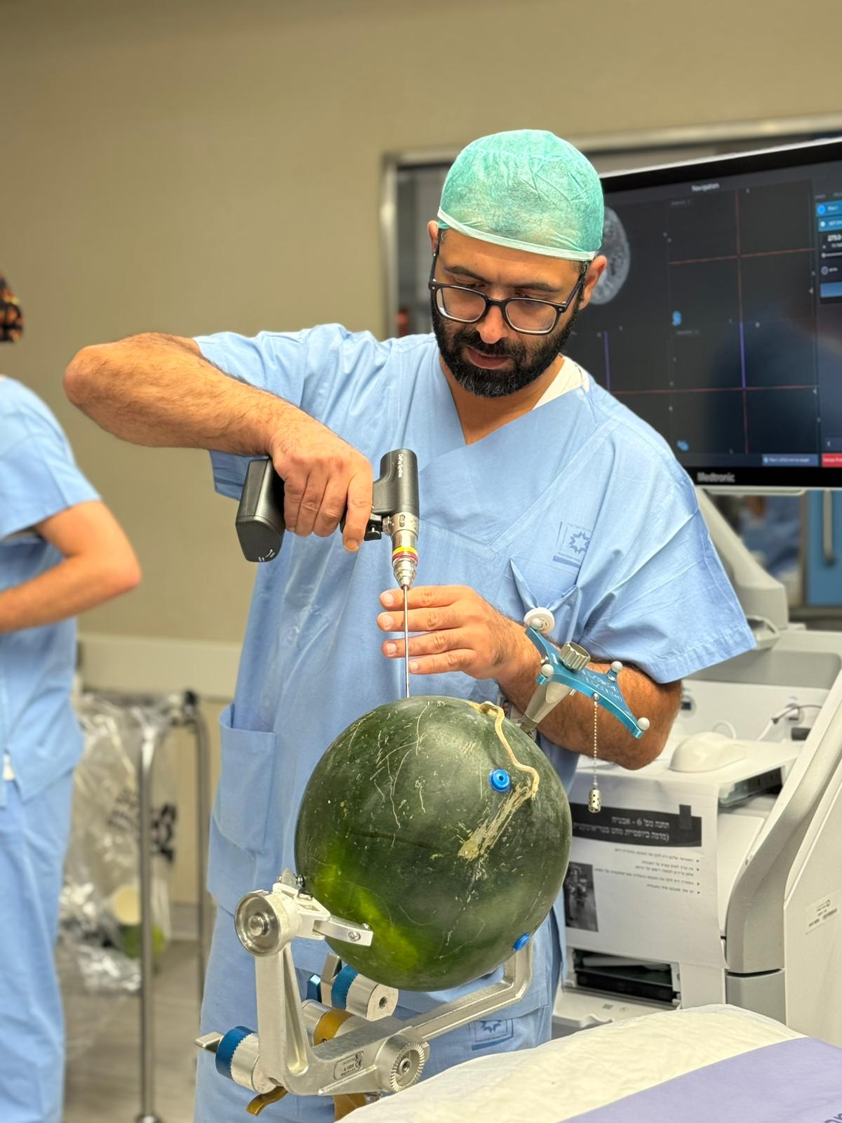 סגן מנהל המחלקה, ד"ר עידו פלדור, תיאר "לימדנו מתמחים כיצד לבצע ביופסיה דרך אבטיח שמדמה מוח אנושי. המתמחה לומד איך להכניס מחט ייעודית אל האבטיח ובאמצעות חומר ספציפי שהזרקנו, הוא מבצע ניקוז של החומר עם המחט המיוחדת, תהליך דומה שמתרחש גם כשמבצעים הליך זה על מטופל"