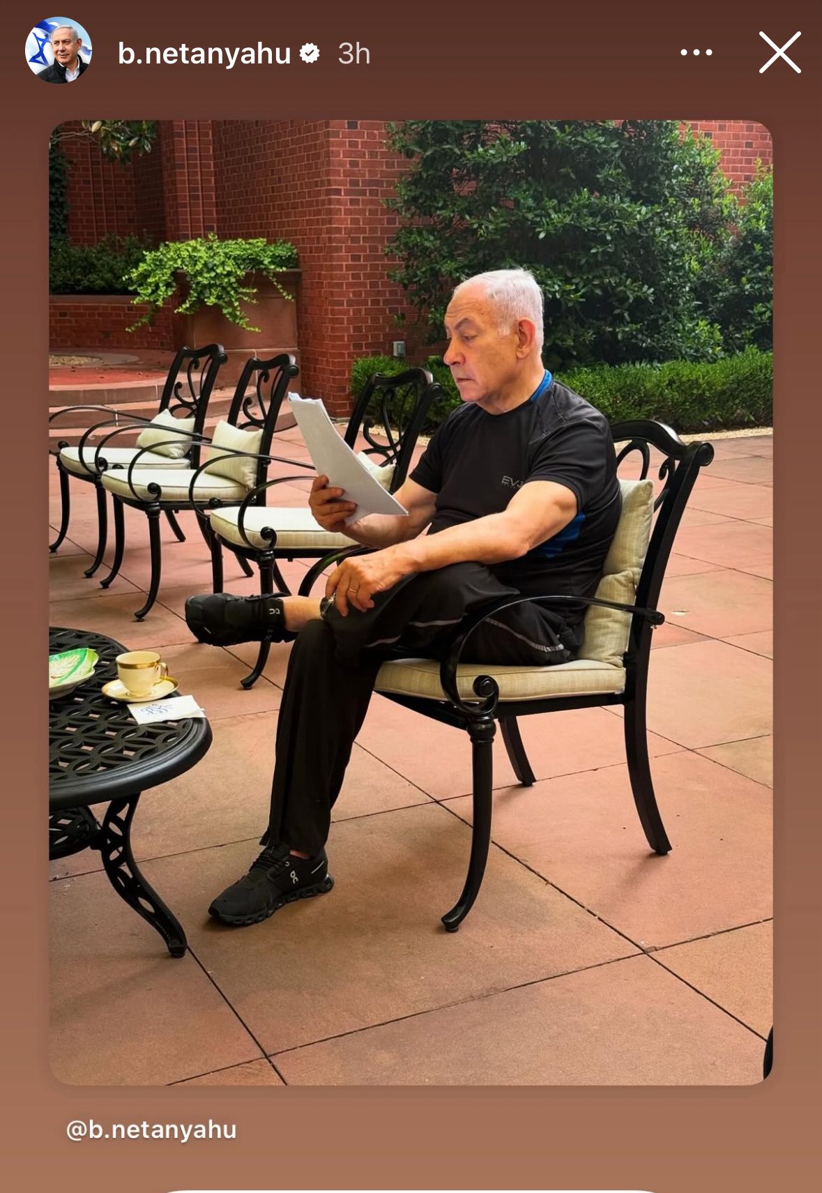 "אחרי ספורט וקפה", כך פתח ראש הממשלה נתניהו את הפוסט ברשתות החברתיות שלו, בו הוא נראה מתכונן לקראת פגישה נוספת עם נשיא ארה"ב דונלד טראמפ.