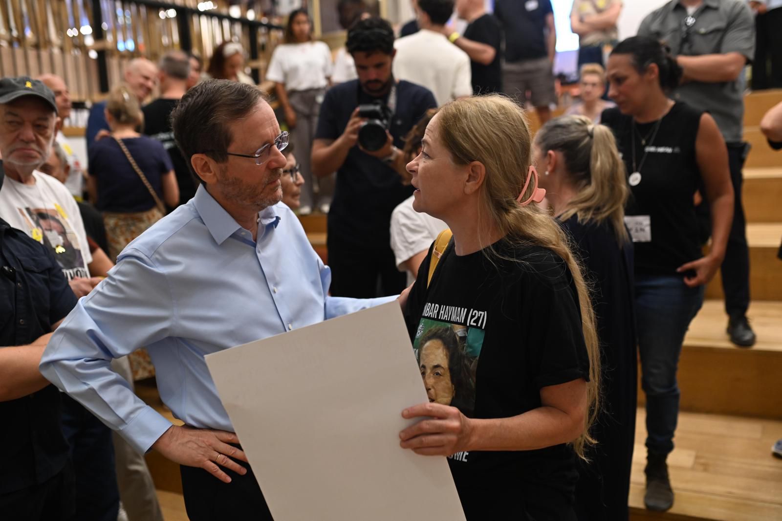 המשפחות אמרו לנשיא: "אנחנו מבקשים ממך אדוני היום כמי שקשוב לרחשי הציבור תפקידך לתווך לדרג המדיני ולמקבלי ההחלטות את הרשמים שלך מצפון ועד דרום במדינת ישראל - עם ישראל דורש את החזרה של כל 50 החטופים והחטופה. אנחנו מבקשים אדוני הנשיא - תתווך לדרג המדיני את הלך הרוח של החברה הישראלית. החזרת כל החטופים וסיום הלחימה זה קונצנזוס לאומי - אין להם זמן, לא לחיים הנמקים בגיהינום ולא לחללים העלולים להיעלם בחורבות עזה".