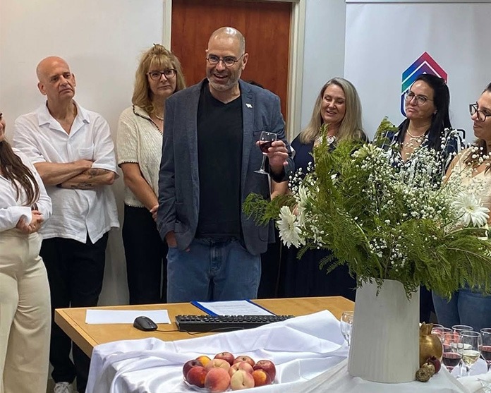 חגי רזניק (במרכז) בהרמת כוסית יחד עם אנשי הקרן והאגף לחיילים משוחררים ומילואים (צילום הקרן לחיימ"ש)