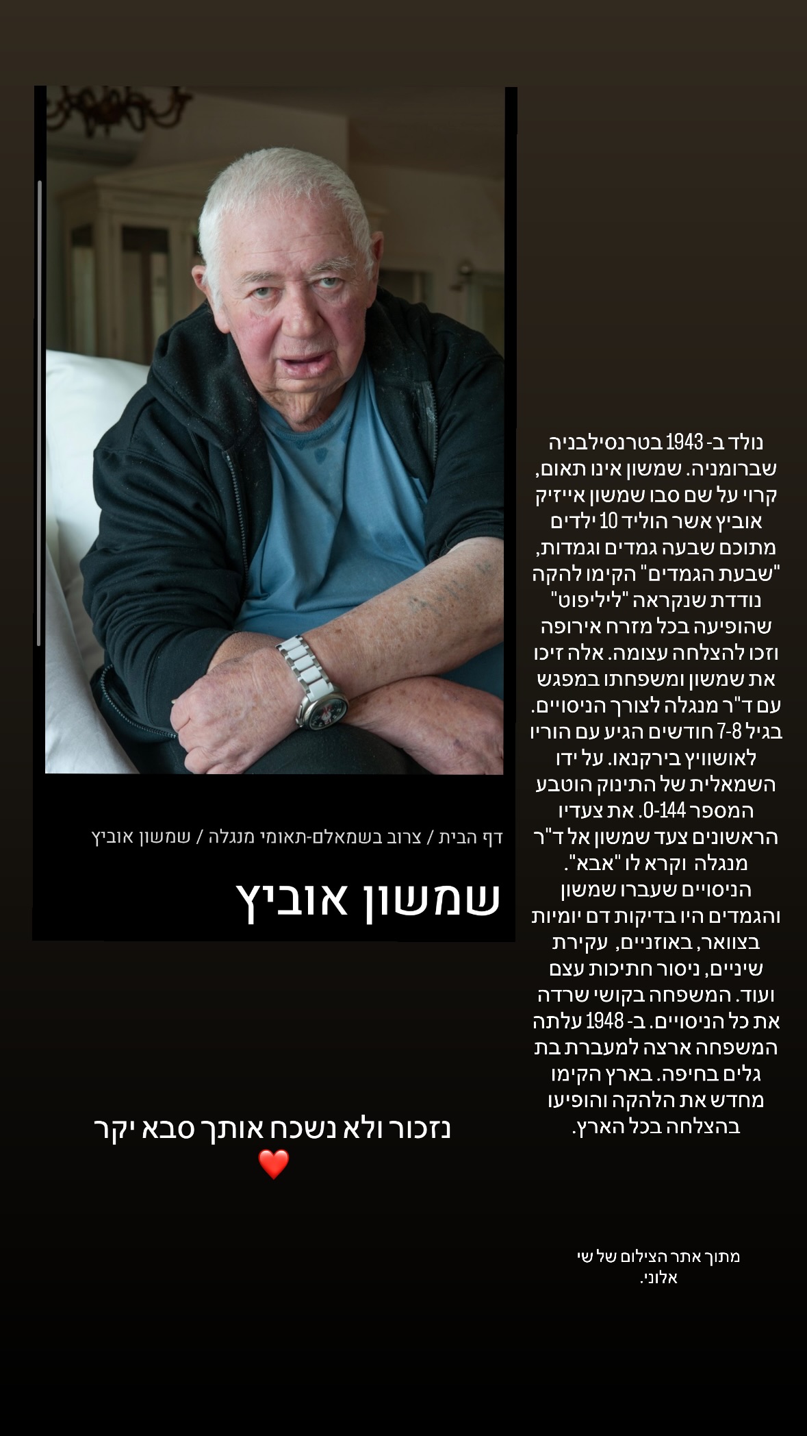 ברקע ציון יום השואה, ליאור ברקוביץ' שיתף בסיפור החיים של סבו ומשפחת הגמדים במחנה אושוויץ. בנוסף, הוא חשף את קשר המעוות של המשפחה עם ד"ר מנגלה, הניסויים האכזריים והרגע שבו סבו קרא לרופא הנאצי "אבא"
