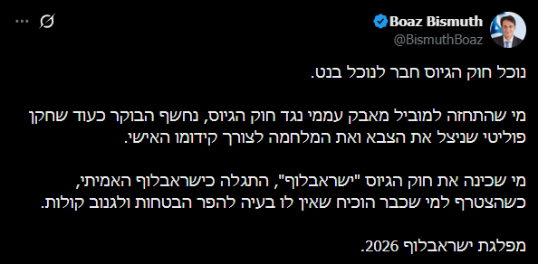 לאחר ההודעה על מינויו, ח"כ ממפלגת הליכוד, בועז ביסמוט תקף בחשבון ה-X את שלו: "נוכל חוק הגיוס חבר לנוכל בנט", עוד הוסיף: "מי שהתחזה למוביל מאבק עממי נגד חוק הגיוס, נחשף הבוקר כעוד שחקן פוליטי שניצל את הצבא ואת המלחמה לצורך קידומו האישי. מי שכינה את חוק הגיוס 'שראבלוף', התגלה כישראבלוף האמיתי, כשהצטרף למי שכבר הוכיח שאין לו בעיה להפר הבטחות ולגנוב קולות. מפלגת ישראבלוף 2026".