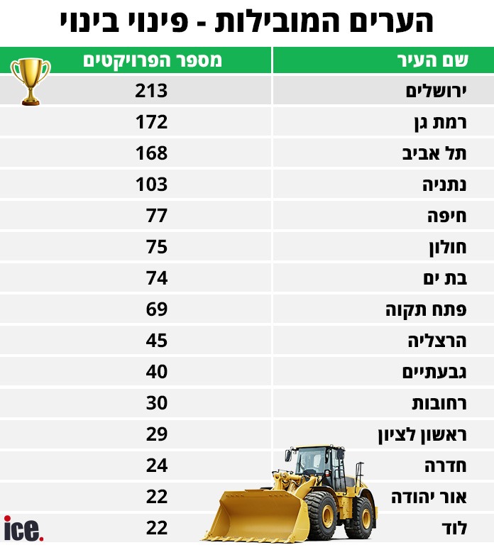 הנה 15 הערים המובילות בפינוי בינוי:
