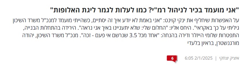 מי שסומן כמחליפו של קוינט הוא יהודה מורגנשטרן, שביקר בימים האחרונים את האופן שבו המדינה מנסה לפתור את משבר הנדל"ן. בעבר אמר כאן בראיון בלעדי כי מינויו למנהל רמ"י הוא בבחינת "עלייה לגמר ליגת האלופות". אפשר להבין גם למה: מתפקידו כמנכ"ל משרד הבינוי והשיכון, משרד אמון שניתנה לו על ידי השר לשעבר גולדנקופף, הוא עתיד לרשת את אחד התפקידים הבכירים בתחום הנדל"ן בישראל.
