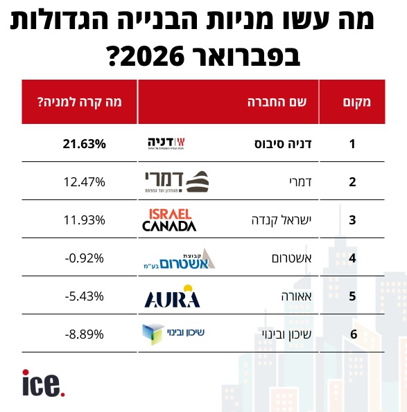חודש פברואר לא משקף את תחילת המלחמה באיראן, אלא בעיקר, בסופו, את הציפיות למלחמה. נזכיר כי במהלך המלחמה החברות הבגדולות ספגו אלויות מימון כבדות וגם מחירי הסחורות עלו, מה ששחק את הרווח היזמי. ובכל זאת, חברות כמו י.ח דמרי וישראל קנדה של ברק רוזן ואסי טוכמאייר, וכן פרשקובסקי, זינקו בשנה שעברה.