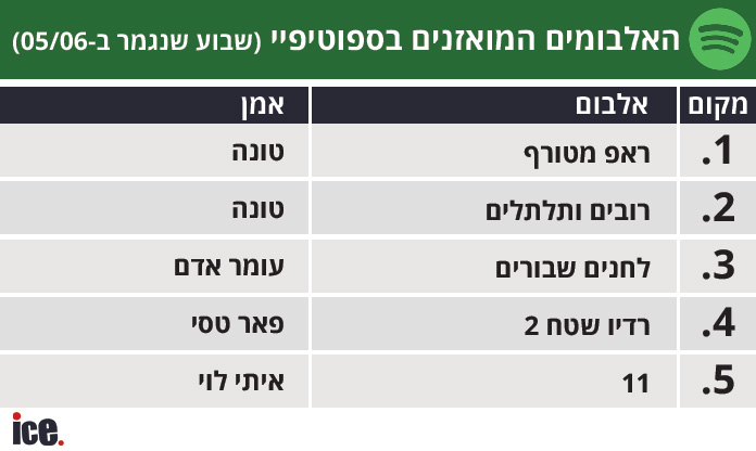 אהבתם את האלבום החדש של טונה? זו האמת | דירוג ספוטיפיי