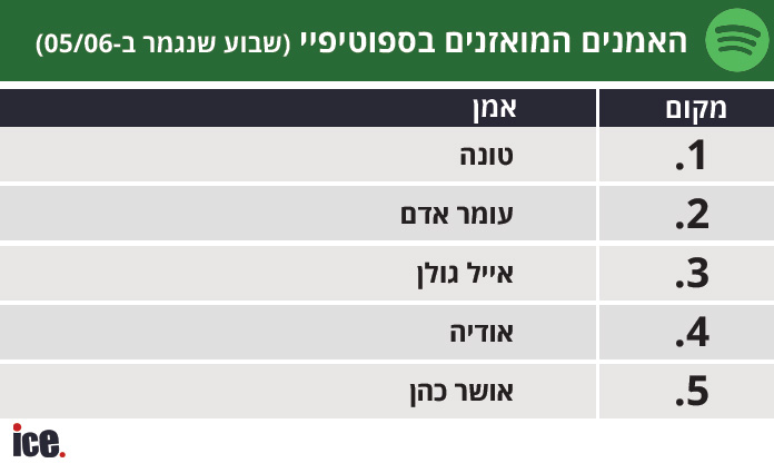 גם זה קרה: לאחר תקופה שהרגישה כמו נצח, עומר אדם - מי שנחשב למלך הבלתי מעורער של דירוג הספוטיפיי בישראל - הוזז מהמקום הראשון על ידי אמן מוכשר לא פחות - טונה.