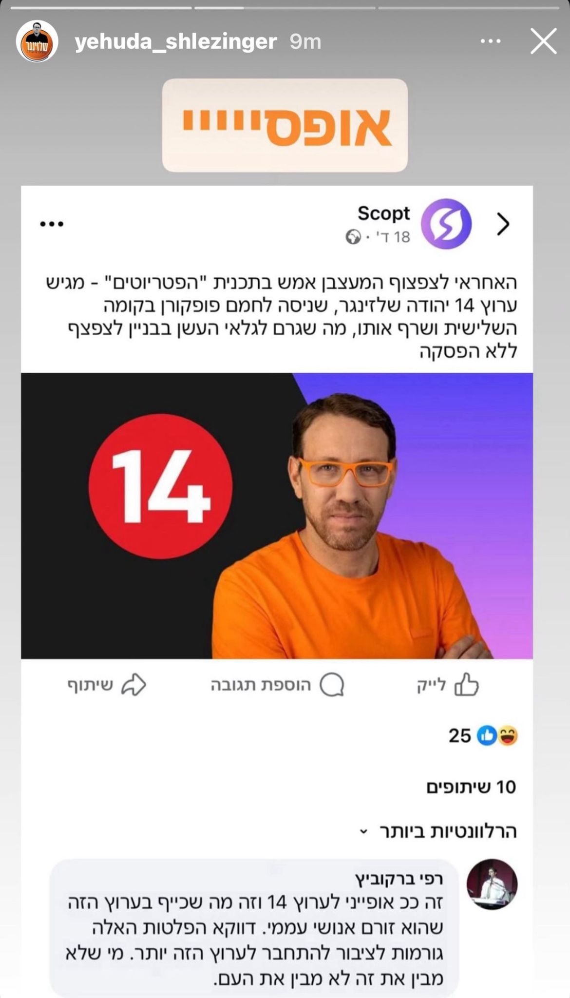 כמעט שריפה בערוץ 14: זה המגיש שאשם באירוע