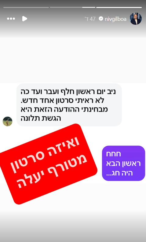 ניב גלבוע חוטף: "ההודעה הזאת היא הגשת תלונה"