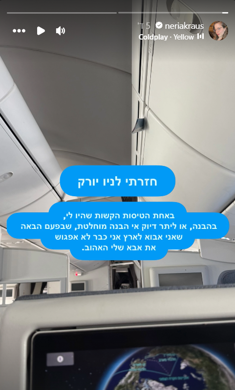 כתבת החוץ של חדשות 13, נריה קראוס, משתפת היום (ראשון) כי היא טסה לארצות הברית לאחר שנאלצה להגיע לישראל במפתיע בעקבות מותו הפתאומי של אביה.