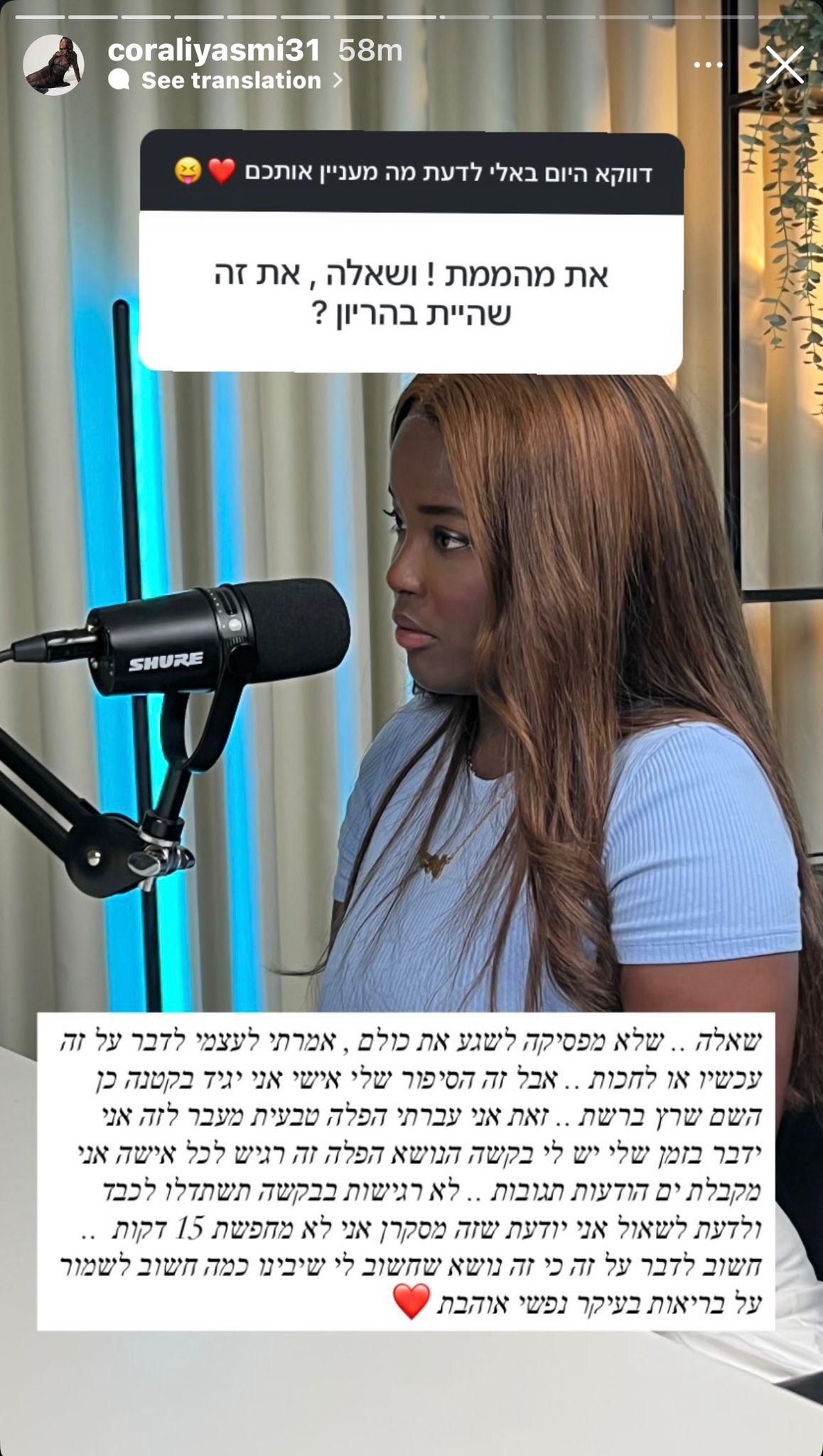 בסטורי החדש שהעלתה היום לעמוד האינסטגרם שלה, שיתפה: "זו שאלה שלא מפסיקה לשגע את כולם. התלבטתי אן לשתף או לחכות, זה הסיפור האישי שלי, אגיד שאני זו ששמה רץ ברשת ואני זו שעברה הפלה טבעית, מעבר לזה זה נושא רגיש, אבקש שתשדלו לכבד".