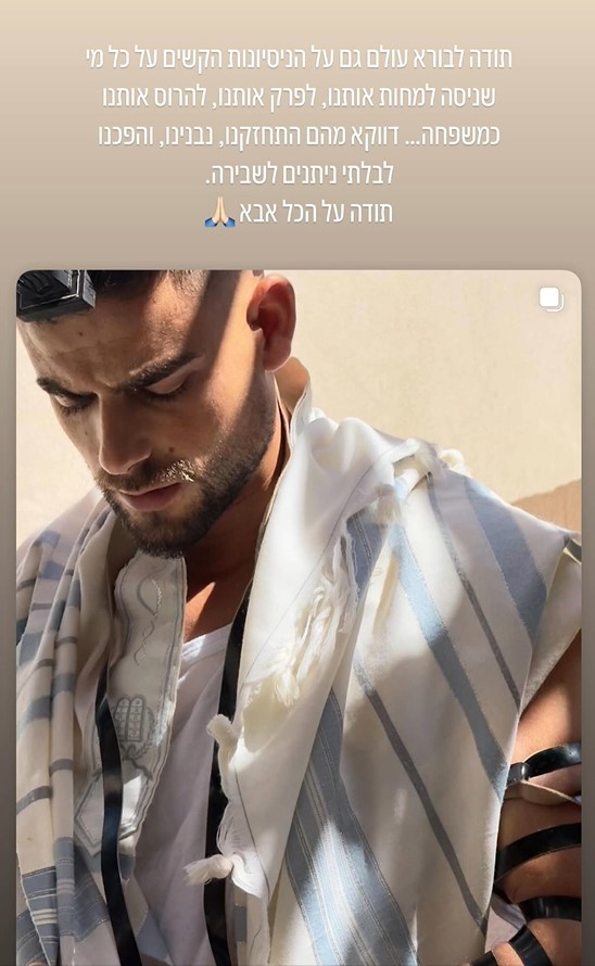 כוכב הריאליטי העלה סטורי לחשבון האינסטגרם שלו וסיפר כי יש מי שמעוניינים בפירוק משפחתו: "תודה לבורא עולם גם על הניסיונות הקשים על כל מי שניסה למחות אותנו, לפרק אותנו, להרוס אותנו כמשפחה"
