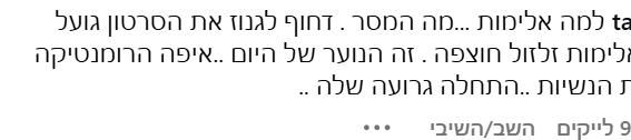 1.המבקרת לא רגועה וזה מביךשי 08/2025/18הגב לתגובה זו0 0כבר שני אייטמים על הקליפ, אחד שיורד עליו בצביעות כי הרי עוד המון עושות את זה, ואחד של תגובות שמצדיקות את עמדת המבקרת, לפעמים עדיף לשתול כי האייטמים האלה מורידים מכם אמינות מאודסגור