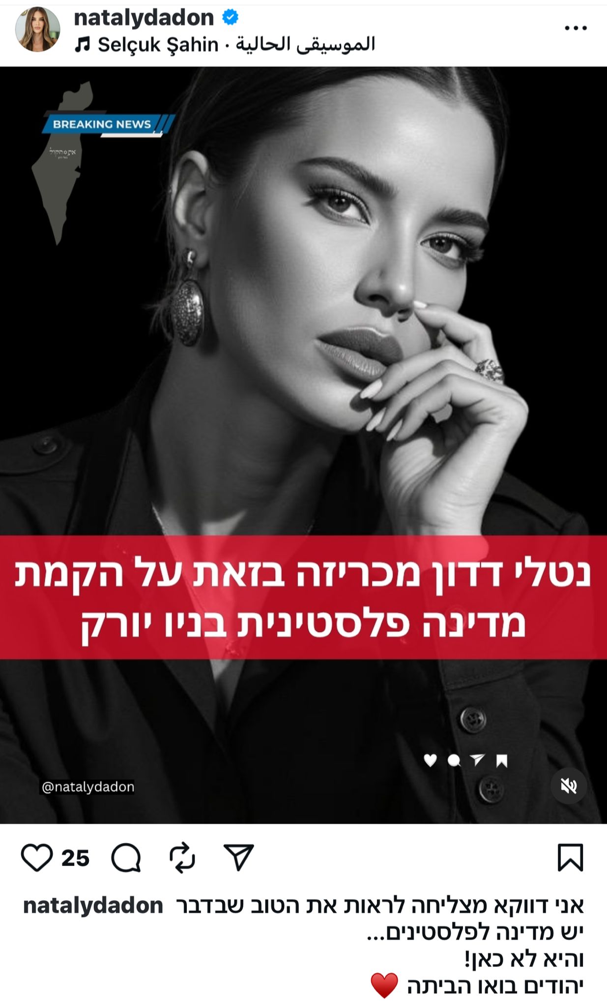המשפיענית ופעילת ההסברה נטלי דדון מגיבה הבוקר (רביעי) לראשונה לניצחונו של זוהראן ממדאני בבחירות ראש העיר של ניו יורק בארצות הברית, שבנה חלק מנכסיו הפוליטיים סביב עמדות אנטי-ישראליות, משתפת דדון לראשונה בציניות את דעתה בפוסט בעמוד האינסטגרם שלה, פוסט שירד מהאוויר לאחר מעל ל-20 דקות.