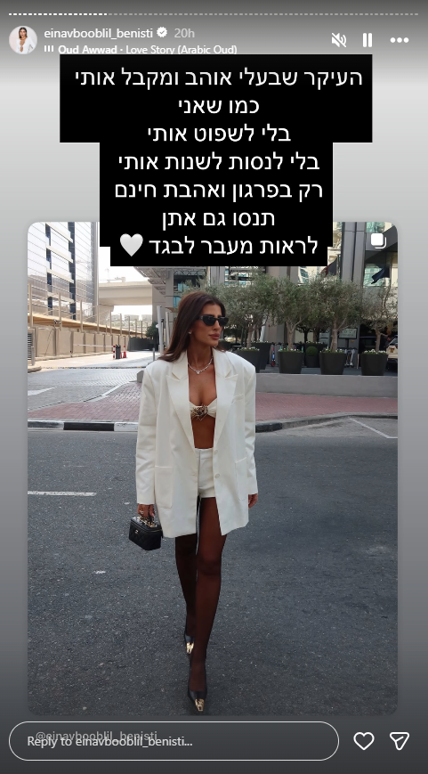 עינב בובליל עוררה סערה ברשת אחרי שהצטלמה עם חזייה בדובאי וחטפה מהעוקבים: "אלי לא משתגע? בעלי לא דתי ולא אתלבש ככה מכבודי אליו". אושיית הרשת לא נותרה חייבת: "רק בפרגון ואהבת חינם". צפו