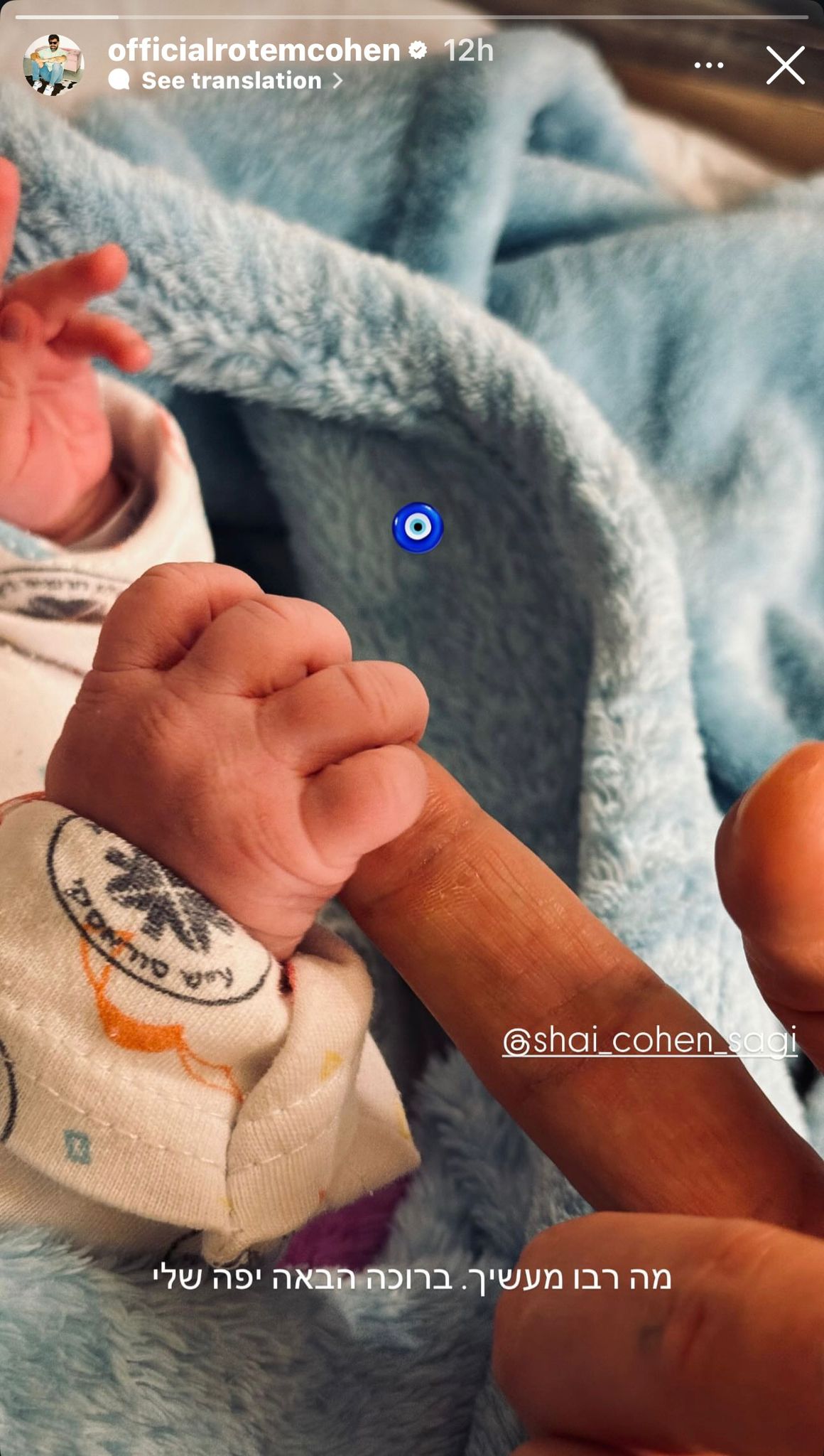 הזמר רותם כהן ואשתו שי שגיא הם אחד הזוגות המוכרים בביצת הבידור. אמש (רביעי) בסטורי מרגש שיתפו השניים כי הביאו לעולם בת שלישית, אחות ל-2 בנים, כהן כתב: "מה רבו מעשיך, ברוכה הבאה יפה שלי" ונראה ידה של התינוקת שהגיעה זה עתה לעולם.