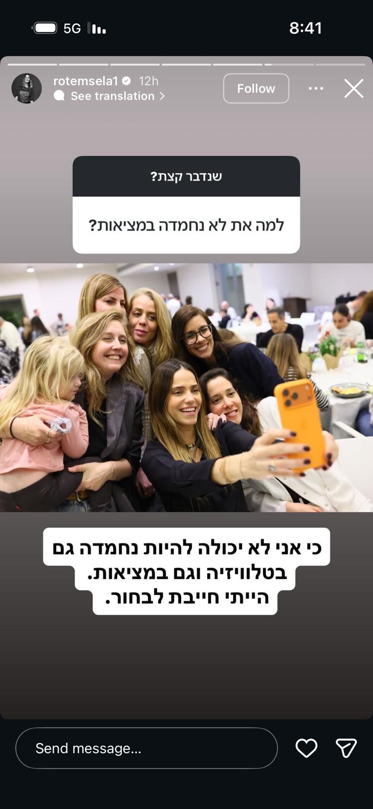 הסטורי של רותם סלע (צילום: אינסטגרם רותם סלע)