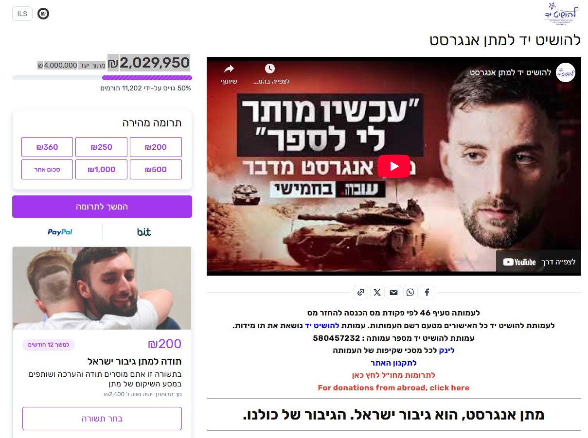 נכון לעכשיו, גויסו בדף מימון ההמונים באתר "להושיט יד" 2,029,950 ₪ מתוך יעד של 4,000,000 ₪. בדף הקמפיין נכתב: