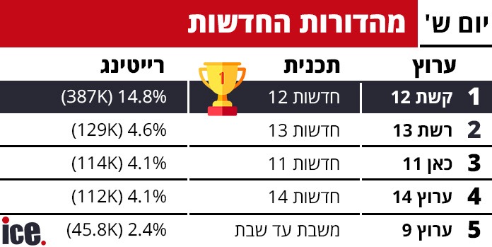 רייטינג: האח הגדול נעלם מהמסך, קשת 12 עקצה